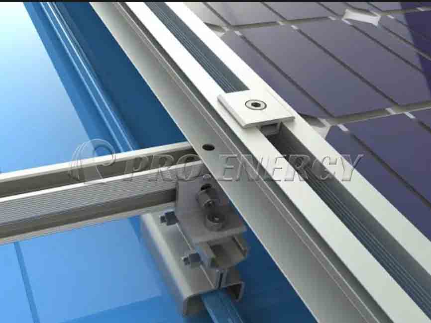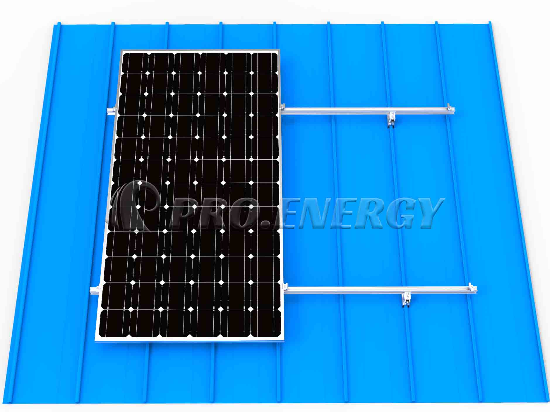 Das von PROFENCE.ENERGY entwickelte Montagesystem für Metalldachschienen eignet sich für Dächer mit Wellblech. Die Konstruktion besteht aus einer leichten Aluminiumlegierung und wird mit Klemmen befestigt, um Beschädigungen am Dach zu vermeiden.