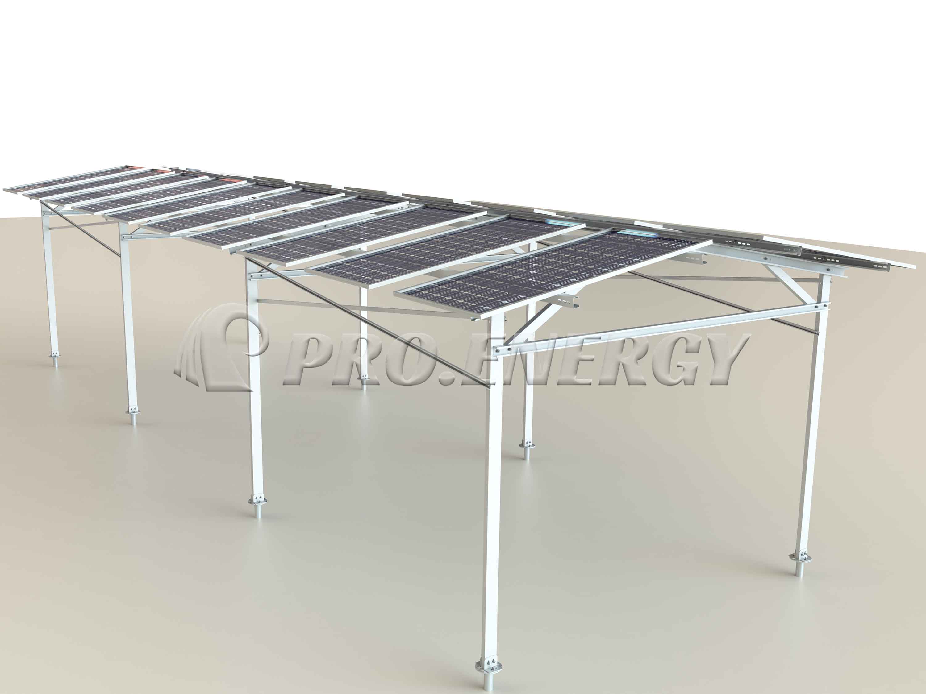 A: Rahmen- und einsäulenbasierte Montage von landwirtschaftlichen Solaranlagen. Alle Konstruktionsformen sind möglich.