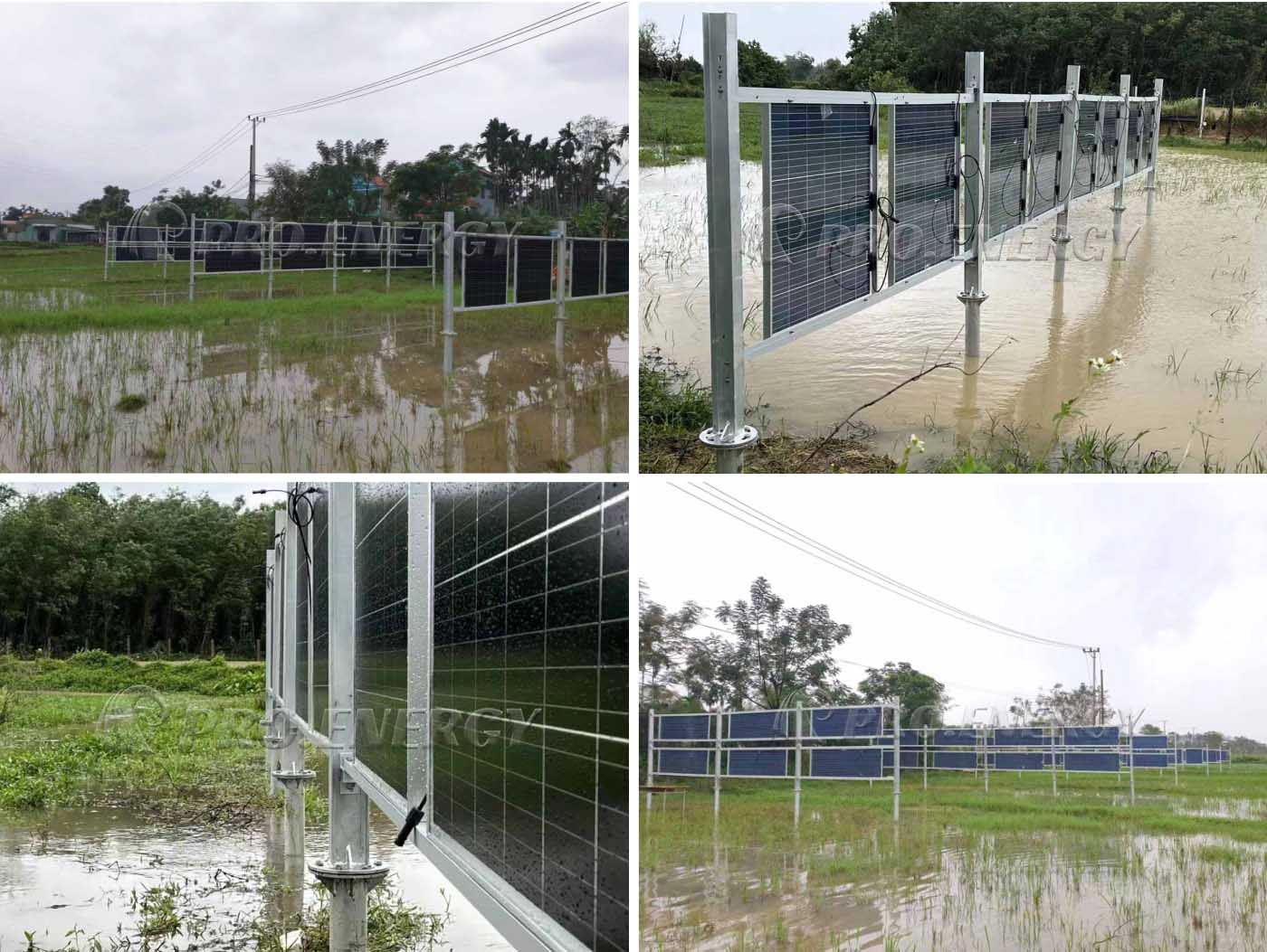 Die von PROFENCE.ENERGY entwickelte vertikale PV-Zaunlösung mit bifazialen Doppelglas-Solarmodulen eignet sich ideal zur Einzäunung von Weideflächen. Die robuste und zugleich funktionale Konstruktion erzeugt nicht nur Strom, sondern ist auch langlebig und witterungsbeständig. Dank der großen Abstände zwischen den Zaunreihen können auch große Landmaschinen problemlos passieren. Dies macht die Lösung zu einer praktischen und energieerzeugenden Alternative zu herkömmlichen Zäunen.